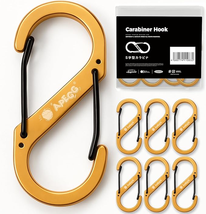 [APEGG]登山用 カラビナ 6個セット S字型 軽量 防サビ 高硬度アルミ合金 耐荷重30kg ブラック