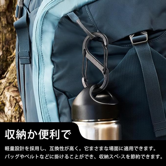 収納か便利で:軽量設計を採用し、互換性が高く。鍵やボトル、スポーツウォーターボトル、手袋、キーホルダー、望遠鏡などの小型アイテムを吊るすことができます。