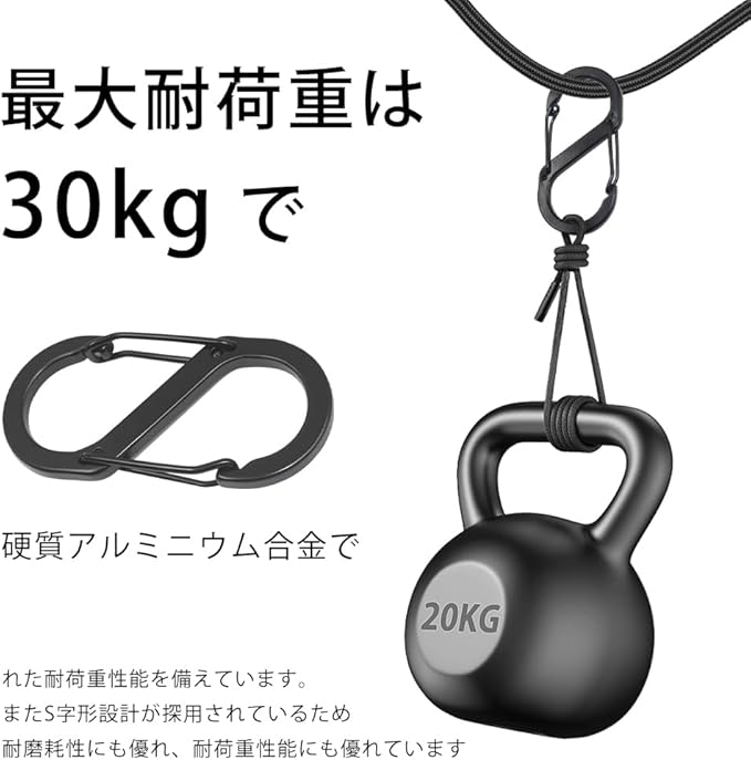 2 サイズからお選びいただけます:S5(約2.3 5cm/約5g)とS7(約3 6.6cm/約8.7g)16個入り※高所作業、車の幸引などには絶対に使用しないでください!!!硬質アルミニウム合金で:本体には耐食性に優れたアルミ合金を、ゲート部分には頑丈なステンレスを使用しています、S5カラビナは20kg、S7カラビナは30kgの耐荷重があり、軽量で錆びにくく、堅牢で長持ちします。双方向フック設計:カラビナ s字 自動ロックバックル、カラビナ滑り止め溝加工技術、耐震リターンスプリング設計を採用。激しい動きによる振動にも耐え、落下や紛失を防ぎます。収納か便利で:軽量設計を採用し、互換性が高く。鍵やボトル、スポーツウォーターボトル、手袋、キーホルダー、望遠鏡などの小型アイテムを吊るすことができます。