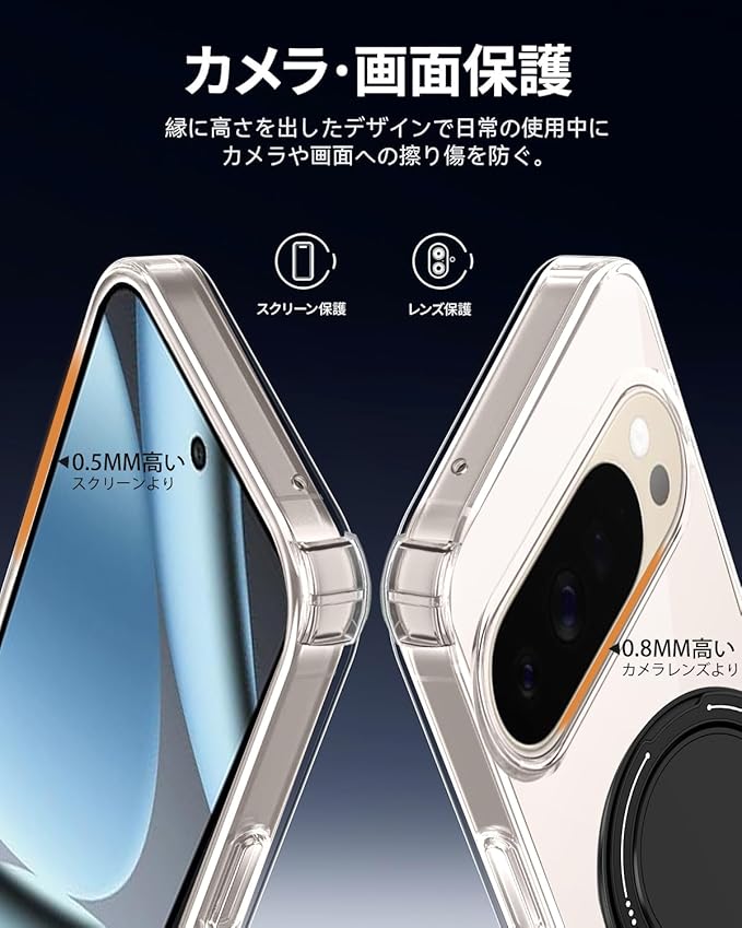 対応 Google Pixel 10 / 10 Pro ケースリング 耐衝撃 360 回転 スタンド機能 縦横両対応 米軍MIL規格 TPU ソフト 透明 シリコン 車載ホルダー対応 滑り止め 落下防止 全面保護カバー (クリア)