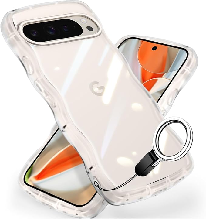 Google Pixel 9 Pro かわいい ケース クリア 波状フレーム うねうね 耐衝撃 グーグル ピクセル9 Pro 滑り止め スマホケース 人気 可愛い 女性用 女子向け カバー 落下防止 ワイヤレス充電対応 (クリア 透明)