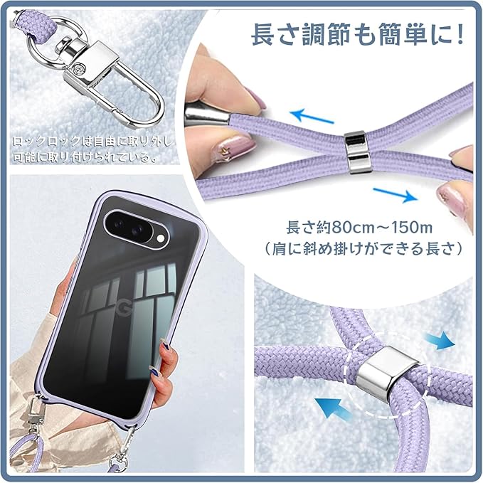 Google Pixel 10 用の ケース ショルダー ストラップ Google Pixel 10 Pro 用の カバー 斜めかけ 肩掛け 首掛け クリア 韓国 ピクセル 10 / 10 Pro スマホケース スターリバーシルバー
