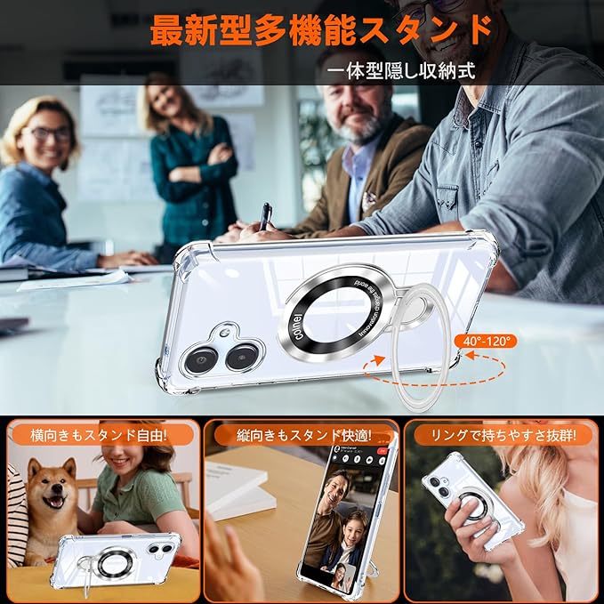 Google Pixel 10 Pro ケース クリア リング付き MagSafe対応 マグネット搭載 縦横両対応 アジャスタブルスタンド 四角エアクッション 耐衝撃 スマホ ケース Google Pixel 10 Pro カバー 衝撃吸収ポケット内蔵 TPU 薄型軽量 全面保護
