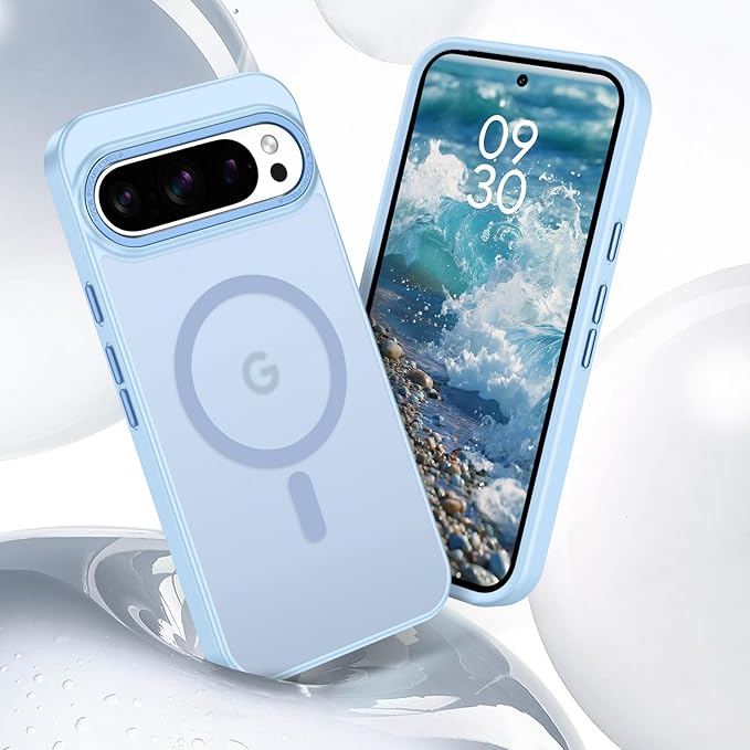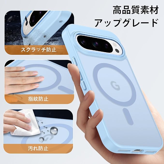 DUEDUE Google Pixel 10 Pro XL ケース マグネット搭載 ライトブルー ピクセル 10 Pro XL ケース 指紋防止 耐衝撃 一体型 薄型 TPUケース 車載ホルダー対応 ワイヤレス充電 全面保護