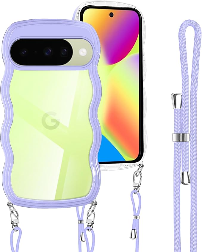 Google Pixel 10 用の ケース ショルダー ストラップ Pixel 10 Pro 用の カバー 波型 ウェーブ 斜めかけ 肩がけ 韓国 ピクセル10 スマホケース パープル