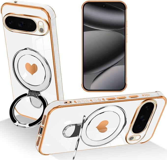 Google Pixel 10 / 10 Pro ケース MagSafe対応 リング スタンド機能 縦横両対応 ワイヤレス充電 レンズ保護 耐衝撃 携帯カバー グーグル ピクセル 10 pro カバー マグネット搭載 車載ホルダー マグセーフ対応 おしゃれ スリムケース ソフト シンプル(ホワイト)