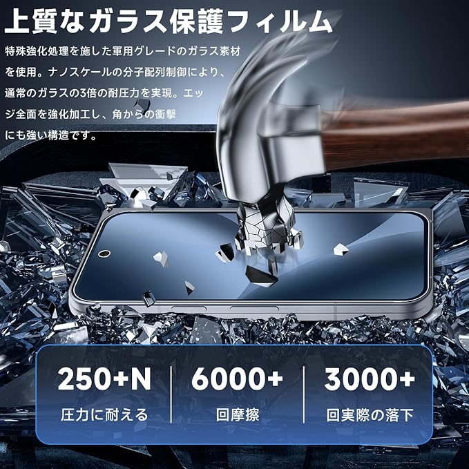 【高品質素材製・飛散防止】現在市場では最も硬い10Hの表面硬度。一般的なガラス保護フィルムよりも耐久性に優れたハードコーティング技術により、10Hの硬度を実現、万が一の破損時も、飛散防止加工によって破片が飛び散ることがなく安全です。