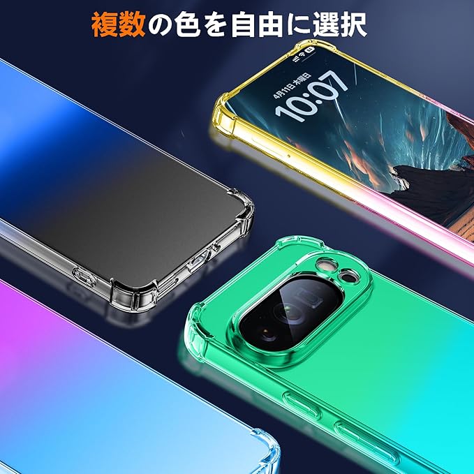 WOYSOBA 対応 Google Pixel 10 Pro XL 用ケース 耐衝撃 グラデーション カバー TPU素材 透明 衝撃吸収 ワイヤレス充電対応 レンズ保護 ピクセル 10 プロ XL ケース クリア Q-SXJB-GP10PXL-01