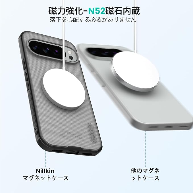 Nillkin Pixel 10 Pro XL 用ケース 【半透明】 マット仕上げ Pixelsnap対応 ワイヤレス充電対応Qi2 マグネット吸着 google ピクセル10/10Proケース 耐衝撃 すり傷、汚れ、指紋防止 薄型 上質 ビジネスに最適(クリアブラック)