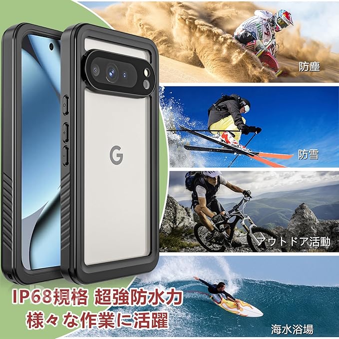 【IP68防水規格】:Google Pixel 10 Pro(6.3インチ)対応 完全防水、防雪、防塵、耐衝撃の 頑丈ケースです。数多くのテストによって、水深さ2mの水中に30分まで水没できます、プール、スノボ、雨の日、夏のプール、お風呂などの様々な場合に適用です。※機種をご確認の上、ご購入くださいませ