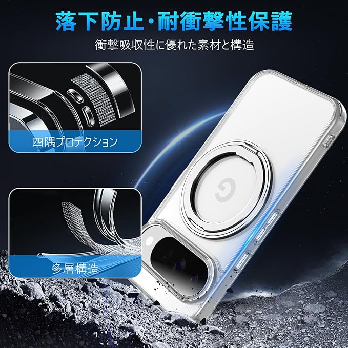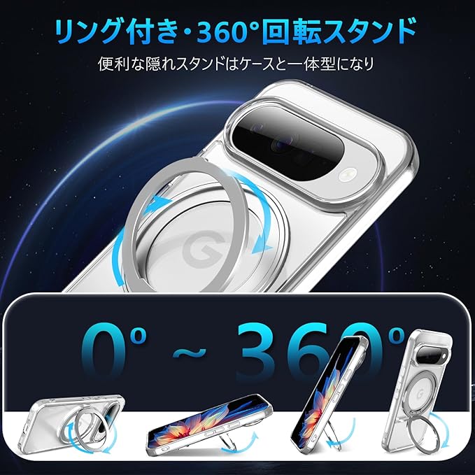 QUEASON【Google Pixel 10/10Pro 通用 MagSafe対応 ケース】360 回転スタンド ワイヤレス充電対応 pixel10 pro 用 ケース リング付き 米軍MIL規格 ピクセル10 用 スマホケース magsafe 超強磁力 落下防止 グーグルピクセル10 スマホケース 耐衝撃 半透明 防指紋(クリア)