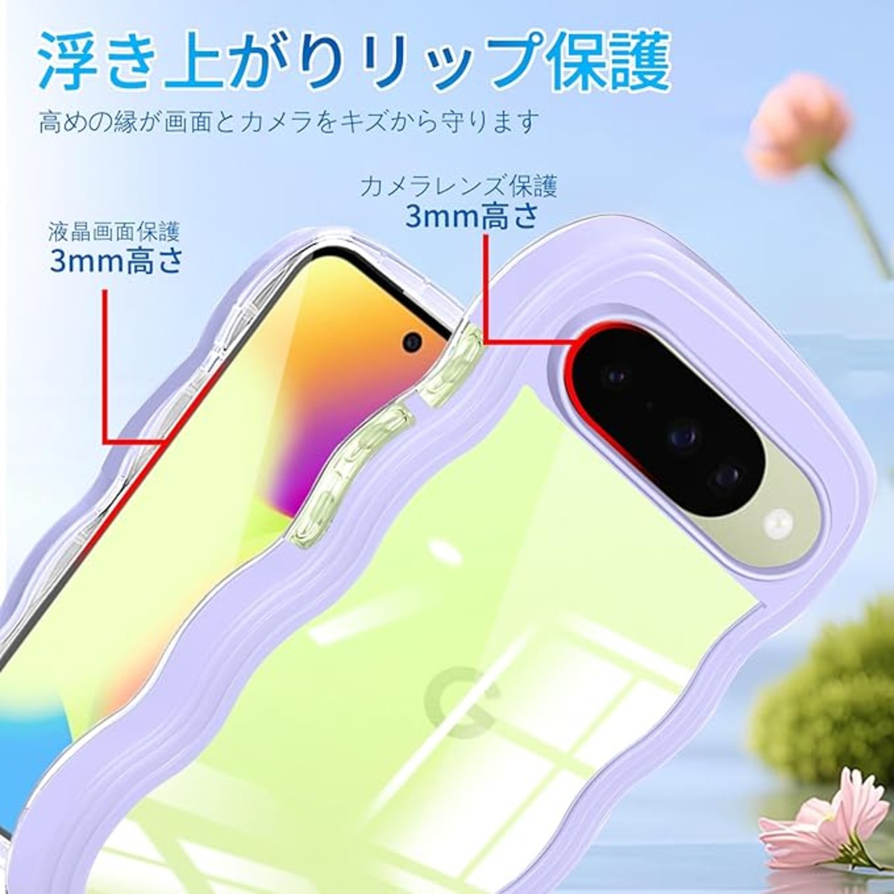 【かわいい波状フレーム】美しいカーリーフレームはおデバイスをもっとスタイリッシュで目を引くものにし、波形フレームのおかげでグリップ力を高めます。オリジナリティを保ちながらもシックなデザイン。