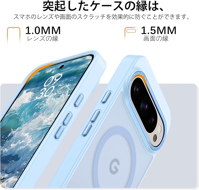 DUEDUE Google Pixel 10 Pro XL ケース マグネット搭載 ライトブルー ピクセル 10 Pro XL ケース 指紋防止 耐衝撃 一体型 薄型 TPUケース 車載ホルダー対応 ワイヤレス充電 全面保護