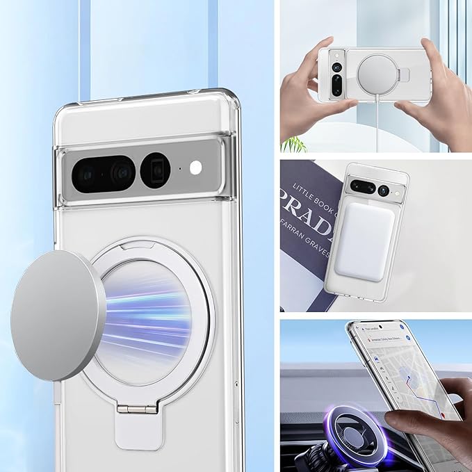 Google Pixel 7 pro ケース MagSafe対応 マグネット搭載 スタンド機能【横縦両立/角度自由調整】 カバー 純正 薄型 クリア 指紋防止 耐衝撃 落下防止 車載ホルダー対応 ワイヤレス充電 全面保護 グーグルピクセル7プロ TPUケース(Pixel 7 proクリア)
