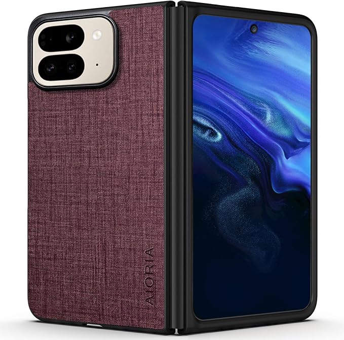 Aioria 互換性 ケース for Google Pixel 10 Pro Fold 5G 生地パターンレザー高級に保護純色スマホケース (Red, for Pixel 10 Pro Fold)