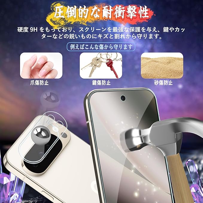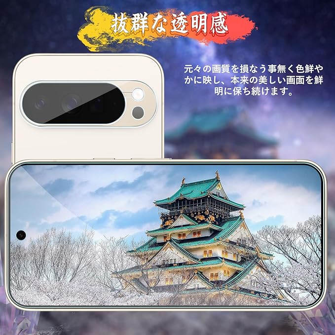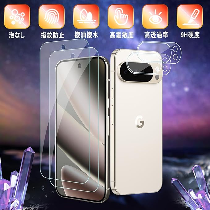 対応 Google Pixel 10 Pro XLガラスフィルム(2枚)+ Google Pixel 10 Pro XLカメラフィルム(2枚)【旭硝子素材製 】フィルム 硬度9H 貼り付け簡単 気泡防止 自動吸着 指紋防止 撥水撥油 ピクセル10 ProXL 全面保護フィルム【4枚入り】