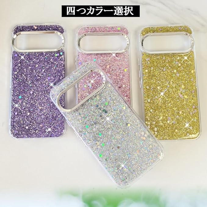 YUYIB スマホケース 対応 Google Pixel 10 Pro XLケース かわいい TPU キラキラ ブリンブリン フラッシュ おしゃれ 女性人気 美しい おもしろい キャラクター 傷防止背面 滑り止め 衝撃吸収 グルピクセル10 Pro XL 携帯電話カバー (ピンク)