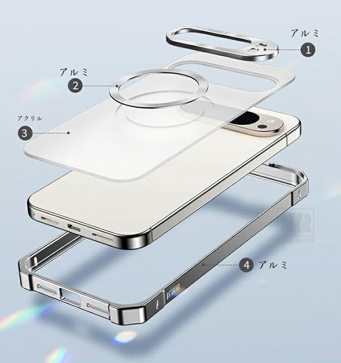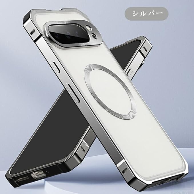 KOOLRIVER・For Pixel10 Pro バンパー ケース アルミバンパー 背面クリア アルミ マグネットで装着 背面半透明 背面パネル付き Qi充電 ワイヤレス充電 対応 かっこいい グーグル ピクセル10 プロ(シルバー)