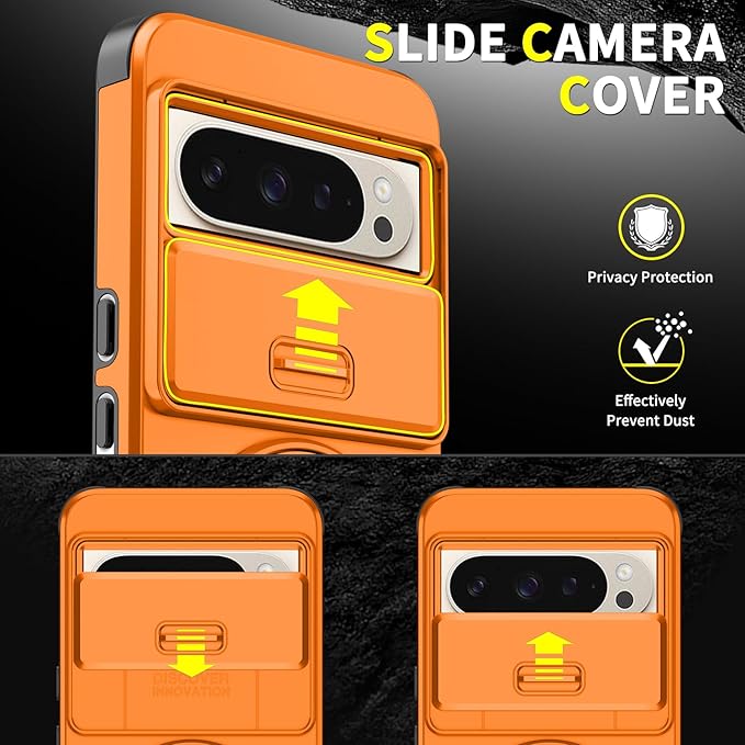 Anlalish携帯ケース 適用する Google Pixel 10 Pro ケース 持っているカメラ保護 耐衝撃 Google Pixel 10 Pro スマホカバー リング人 気 オシャレ車載ホルダー 対応 スライド 保護 カード (オレンジ)