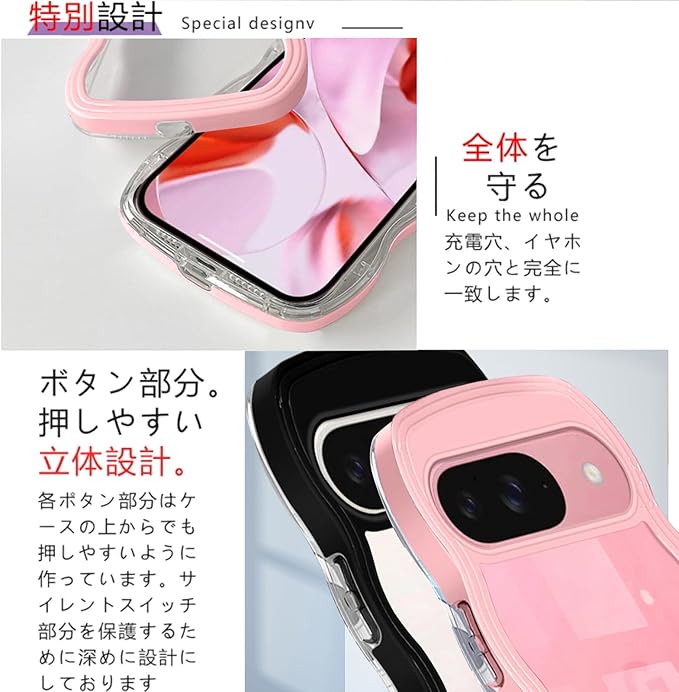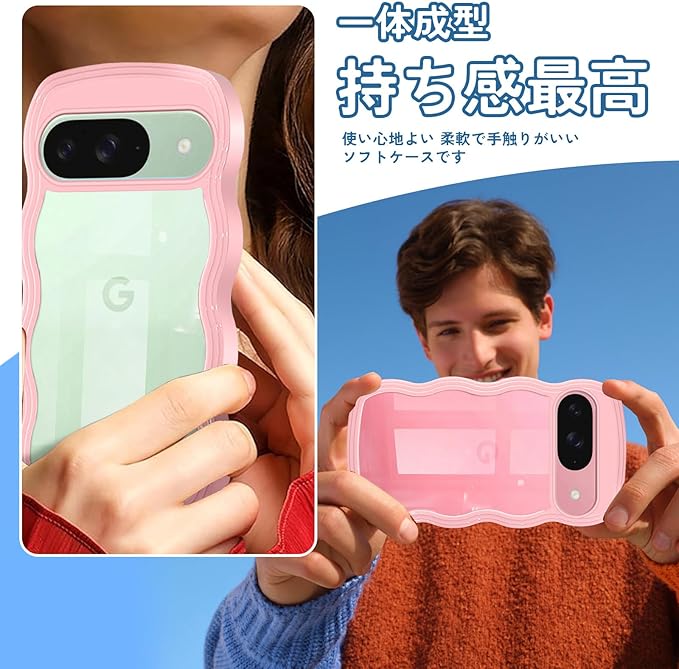 Google Pixel 9 用 ケース Google Pixel 9 Pro 用 ケース クリア ウェーブ ピクセル9 プロ 用 カバー 透明 韓国 波状エッジ ピクセル9 用 スマホケース ピンク