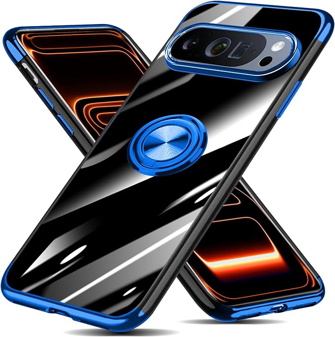 Mnunjiajia 対応 Google Pixel 10 Pro用 ケース Google Pixel 10 用 ケース リング クリア 透明 TPU メッキ 加工 耐衝撃 車載ホルダー対応 スタンド機能 防塵 薄型 軽量 落下防止 一体型 変形防止 全面保護カバー ピクセル 10/10 プロ カバー 青 MJJ-1052-12-03