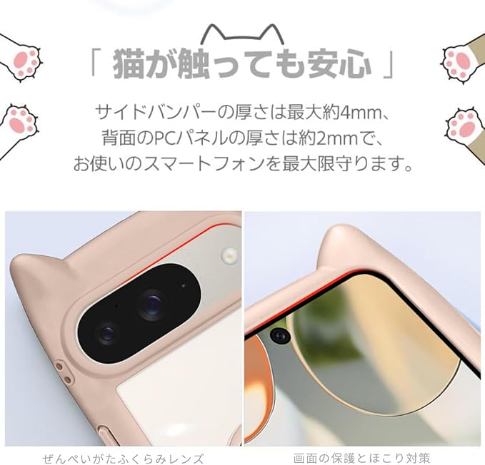 Google Pixel 9/9 Pro 用 ケース クリア カバー 猫耳 リング付き リングホルダ かわいい おしゃれ スタンド付き ストラップホール ピクセル9/9プロ スマホケース 多機能 全面保護 落下防止(ピンク)