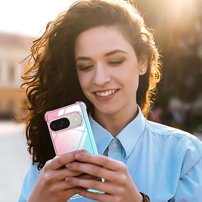 対応 Google Pixel 9 / Pixel 9 Pro 用 ケース クリア TPU 薄型 軽量 耐衝撃 米軍MIL規格取得 滑り止め 黄変防止 防塵 一体型 人気 携帯カバー(ピンクグリーン)