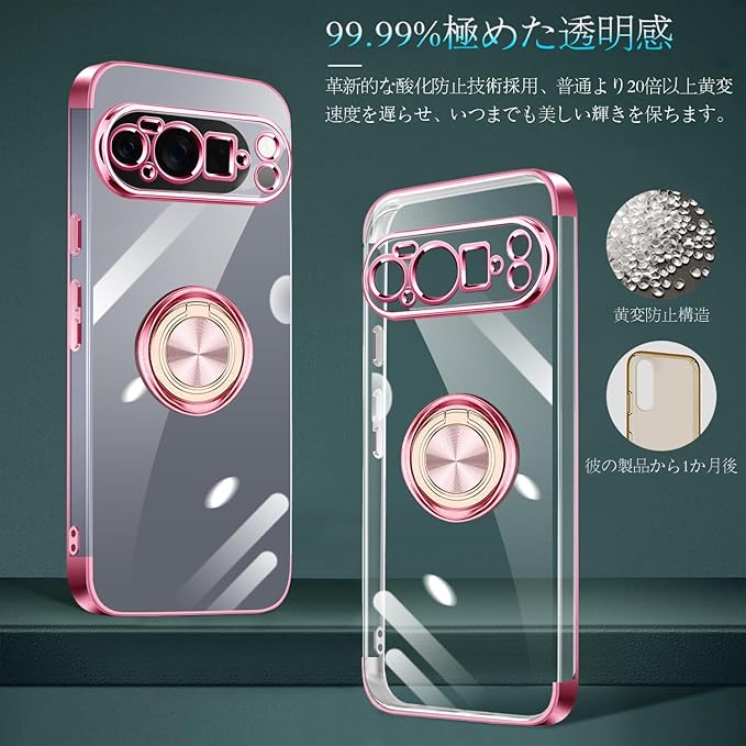 Cexitesuo for Google ピクセル 10 Pro XL ケース リング付き クリア ピクセル10Pro XL ケース 耐衝撃 スタンド機能 ストラップホール付き 軽量 スリム ソフト TPU ピクセル 10pro xl カバー 透明 TPU 擦り傷防止 落下防止 (ローズゴールド)