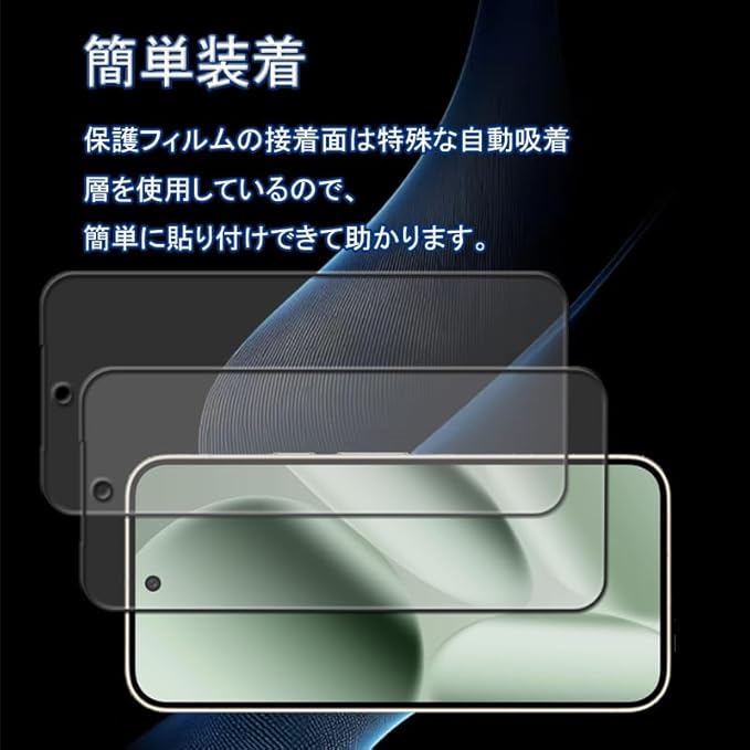 簡単装着: 保護フィルムの接着面は特殊な自動吸着層を使用しているので、気泡が入りづらくなっています。フィルム貼りが苦手な人や絶対気泡を入れたくない人も簡単に貼り付けできて助かります。