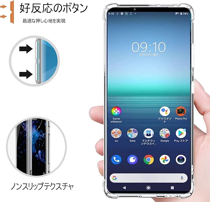 [完璧な保護] 本体の落下時に伝わる衝撃をケース内側の四隅(エアクッション)で吸収するので、衝撃を最小限に抑えます。ケースのフレーム部分はスクリーンやカメラレンズより高くなっており、デバイスを置く際にも擦り傷からしっかり守ります。