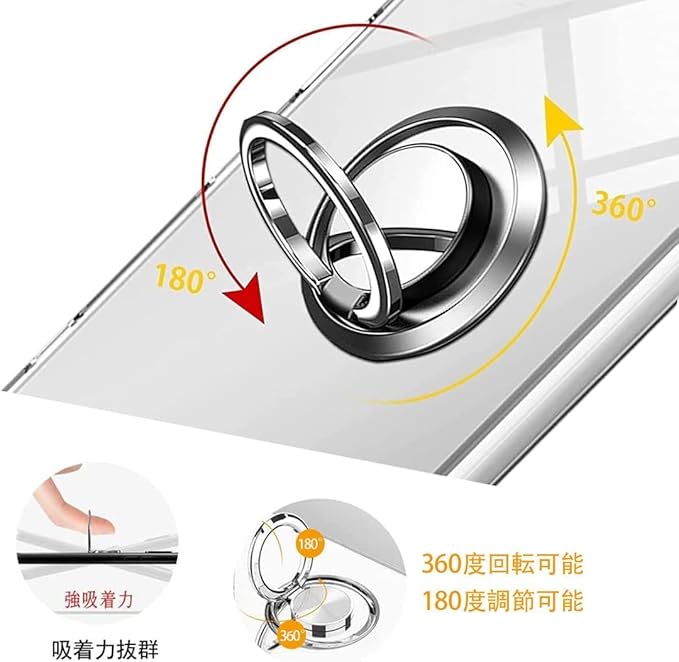【多機能のリング付き】 リングは360度回転、180度スイング可能。片手で携帯を操作でき、滑り止め、強奪、落下などのことを防げます。リング.ホルダーの機能は携帯を横に放置できて、いつでもどこでも音楽、映画などの娯楽番組を思い切り楽しめます。