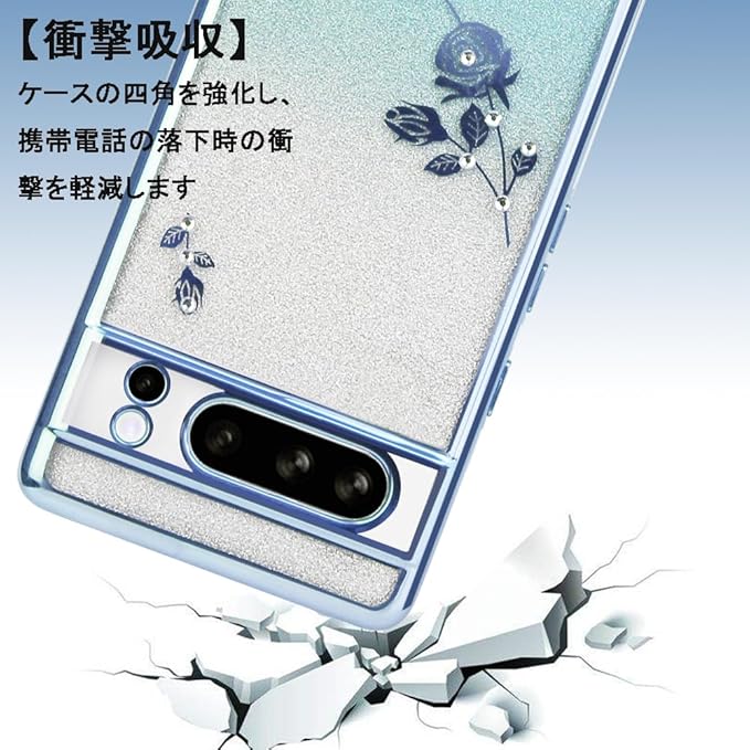 JOOBOY スマホケース 対応 Google Pixel 8Pro 用 ケース リング付き クリア キラキラ メッキ加工 花柄 ソフトケース TPU 薄型 おしゃれ かわいい 衝撃吸収 ブランド グーグル ピクセル 8プロ カバー (ブルー)