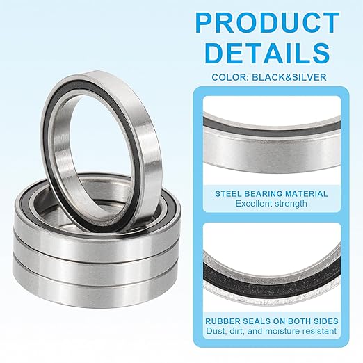 ダブルラバーシール:ベアリングには両側に黒いラバーシールが付いており、優れた防塵、汚れ防止、防湿性を提供し、スムーズな動作を確保し寿命を延ばします。