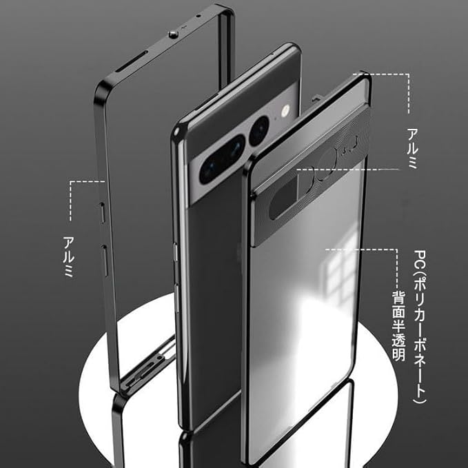 Pixel9 Pro XL バンパー ケース アルミバンパー かっこいい クリア 半透明 マット仕様 背面パネル (アクリル) カメラレンズカバー付き (強化ガラス) Google グーグル ピクセル9 プロ XL スマホケース スマホカバー
