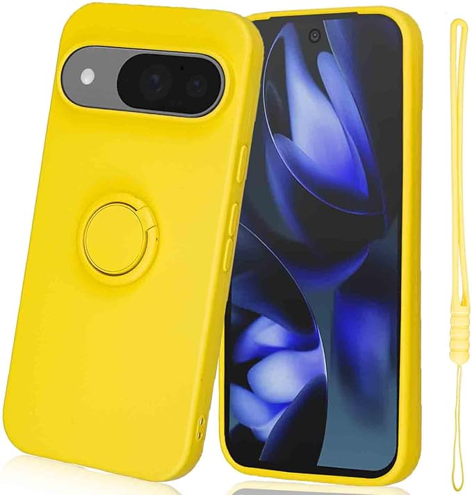 【Aqier】Google Pixel 9/Pixel 9 Pro 用 携帯ケース ソフト スマホケース(イエロー)リングケース ピクセル9 ピクセル9プロ 極薄 TPU 耐衝撃 スタンド機能 360 回転 車載ホルダー カバー グーグルpixel9pro Yellow