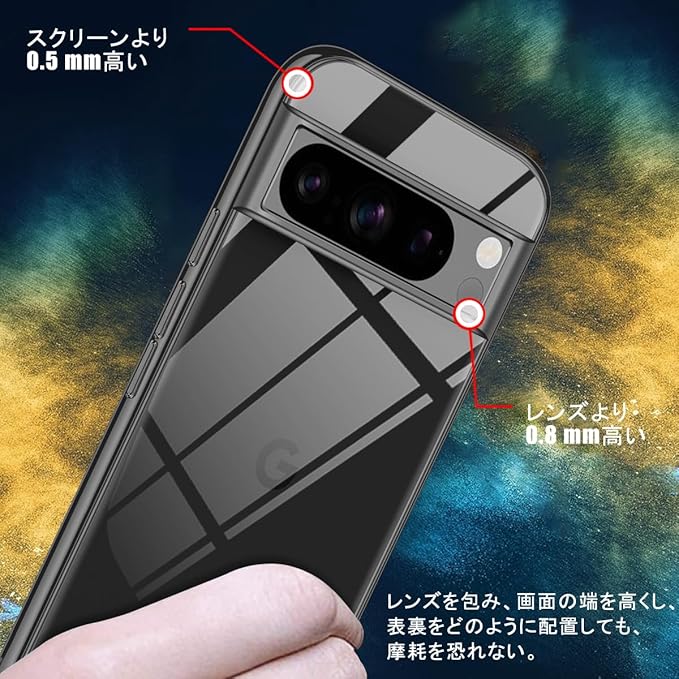【360 全面保護】 グーグルピクセル8pro 用 とケースの縁の僅かな段差により地面との接触を避け、Pixel8 Proの画面への傷を防ぐ設計です。また背面のカメラが地面に触れないようにカメラより高く設計されており、大切なカメラレンズを傷から守ります。それに机に置いて画面を操作してもがたつきません。