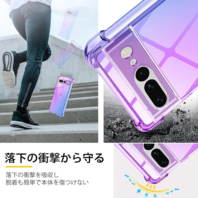 Alupell ケース 対応 7 Pro 用 クリア TPU 薄型 軽量シリコン 耐衝撃 グラデーション色 ケース スマホケース 指紋防止 防塵 一体型 人気 携帯カバー カバー(パープルブルー)
