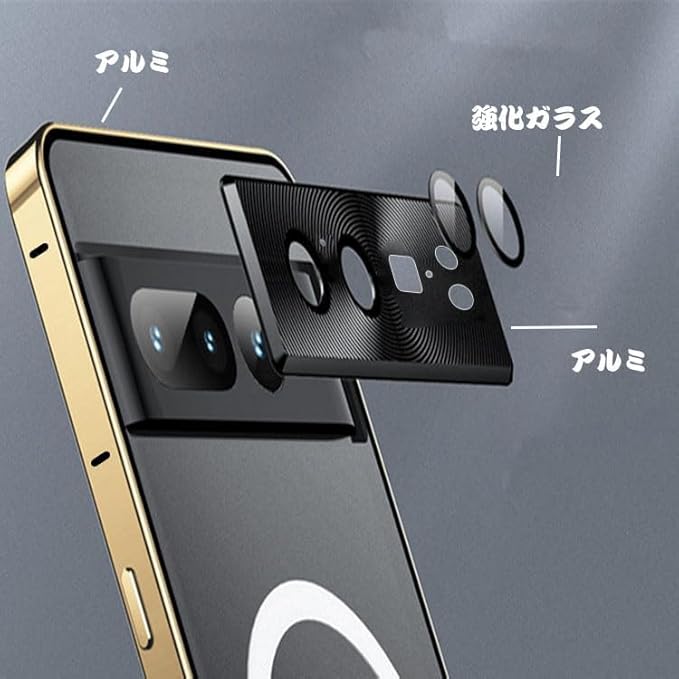 【Fotee】Pixel9 Pro バンパー ケース Qi充電 ワイヤレス充電 対応 アルミバンパー かっこいい クリア 半透明 マット仕様 背面パネル (アクリル) カメラレンズカバー付き (強化ガラス) グーグル ピクセル9 プロ おしゃれ スマホケース スマホカバー (ゴールド, Google Pixel 9)