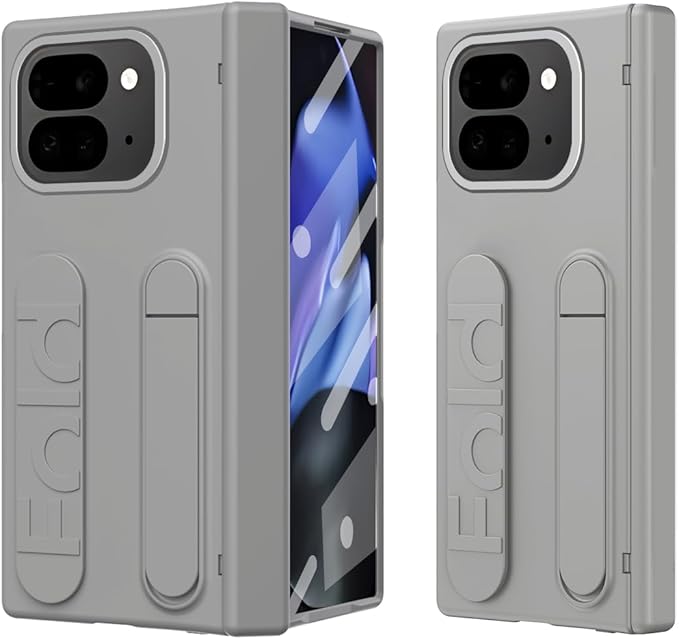 GG Pxl 9 Pro Foldのケース 手帳型 強化ガラス保護フィルム マットの表面 指紋防止 ヒンジ保護カバー 薄型 軽量 全面保護 肌にやさしい感触 レンズ保護 ワイヤレス充電 リストバンド スタンド機能 人気 折り畳み 耐衝撃 滑り防止 携帯電話 フレーム 落下防止 かわいい 財布型 スマホ Beautycatcher - チタン灰