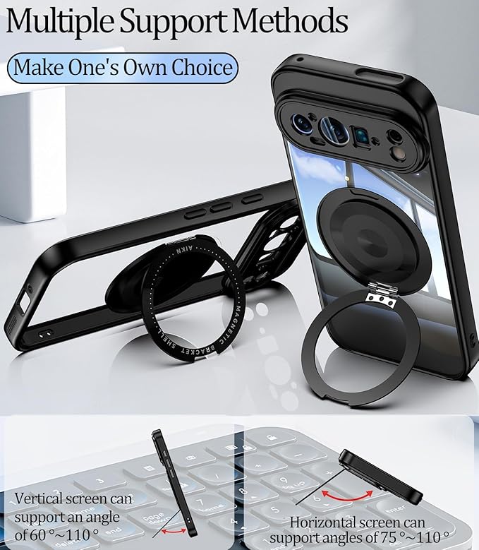 利便性:For Google Pixel 9 Pro 携帯ケースリング。調整可能なリングホルダー付き プロケースでは、携帯電話をあらゆる角度に調整してニーズを満たすことができま