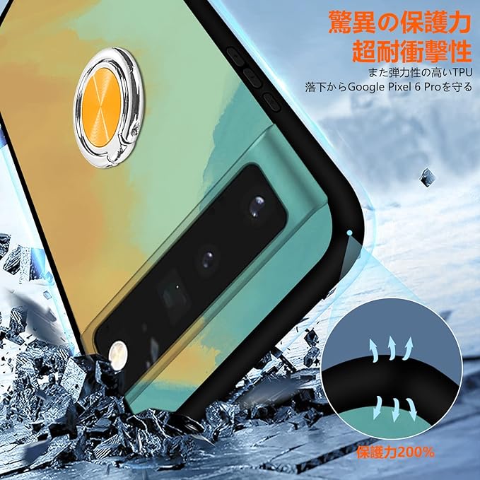 Google Pixel 6 Pro ケース リング付き TPU 耐衝撃 超軍用規格 グーグル ピクセル6プロ カバー 耐久 軽量 薄型 ストラップホール付き 車載ホルダー対応 指紋防止 落下防止 レンズ保護 スタンド機能 Pixel 6 Pro 全面保護カバー