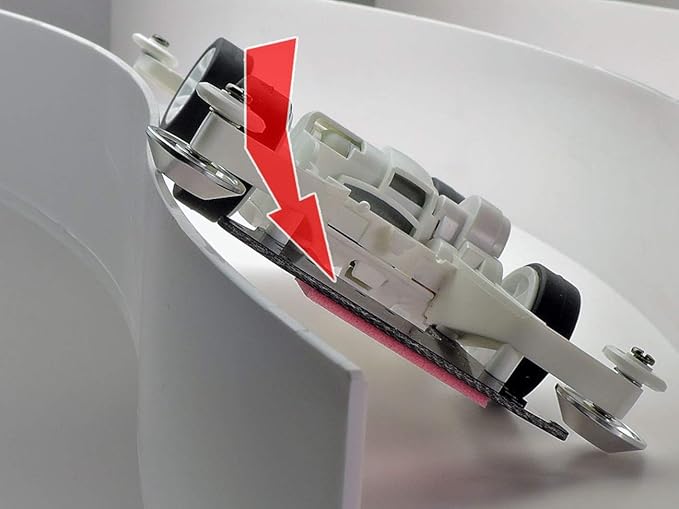 テーパー(すり鉢型)形状により、マシンがコースフェンスに乗り上げた時にコース内へ復帰しやすい直径19mmのアルミベアリングローラー