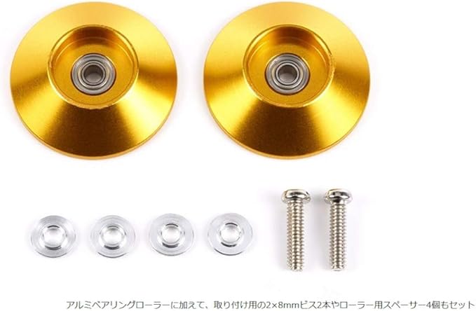 アルミベアリングローラーに加えて、取り付け用の2 8mmビス2本やローラー用スペーサー4個もセット