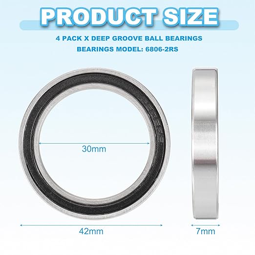 モデル:4個 6806-2RS シールドベアリング:内径=30mm、外径=42mm、厚さ=7mm