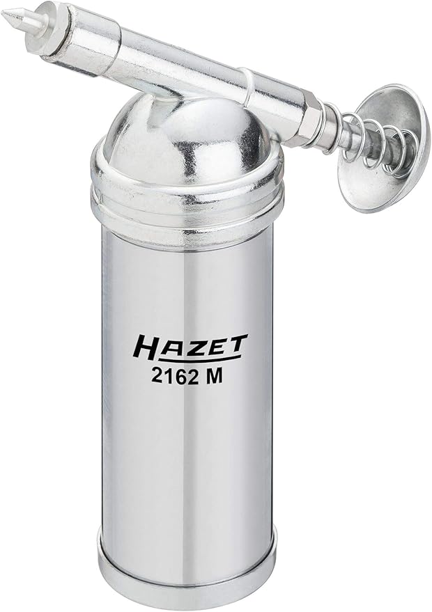 HAZET ミニグリースガン; 商品番号: 2162M; EAN: 4000896185634; 用途: 打撃機構、スピンドルなどの精密な潤滑; 充填容量: 80 g; 最大1,000 PSI / 69 barの圧力を発生; 緩いグリースで充填; 50 と90 デザインのグリースニップルを含む; 寸法/長さ: 145 mm; 正味重量(kg): 0.27 kg