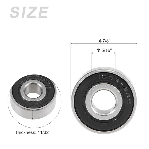 [2]:仕様 - 全体寸法: 5/16 x 7/8 x 11/32インチ(内径*外径*厚さ); モデル: 1603-2RS; シールドタイプ: ダブルシールド