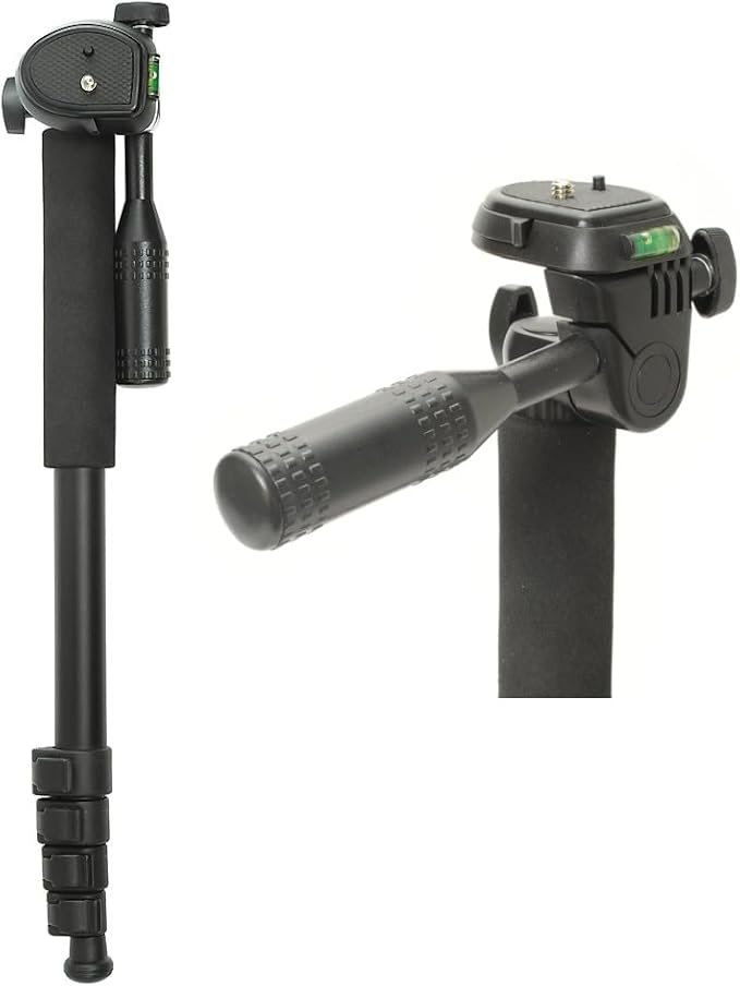 ビデオカメラの撮影に適した軽量一脚。クイックシュー付き雲台とパン棒で機動力がアップ。水準器も内臓。雲台のティルト機構を活かせば、カメラでの縦位置撮影も簡単です。