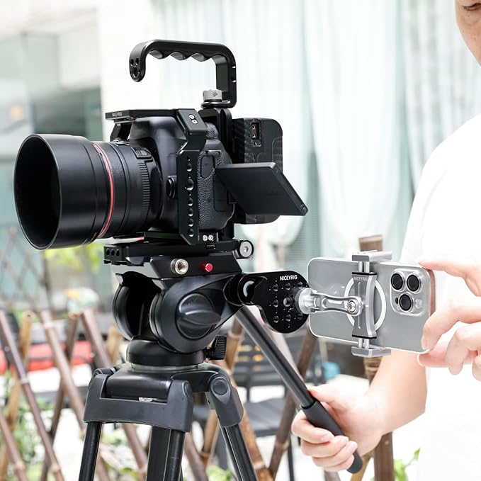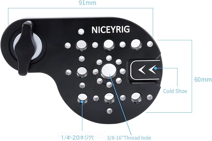 3/8”-16ARRI位置決め穴、コールドシューマウントと複数の1/4“-20ネジ穴付き、マイク、マジックアーム、ロッド、バッテリ―等カメラアクセサリーが取付けられる。ビデオ雲台が回転すると,それに応じて撮影アクセサリーも対する角度を変更することができます。