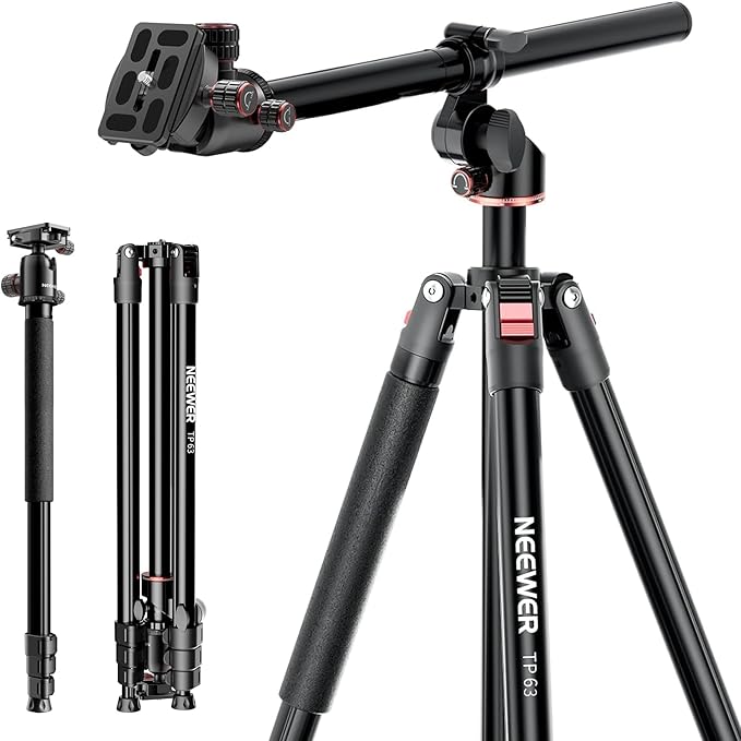 NEEWER カメラ三脚一脚 230cm 俯瞰/水平撮影 ボールヘッド/フレキシブルセンターコラム付き 金属製 DSLRビデオカメラトラベルスタンド アルカ型QRプレート&逆折り脚 最大荷重10kg TP63