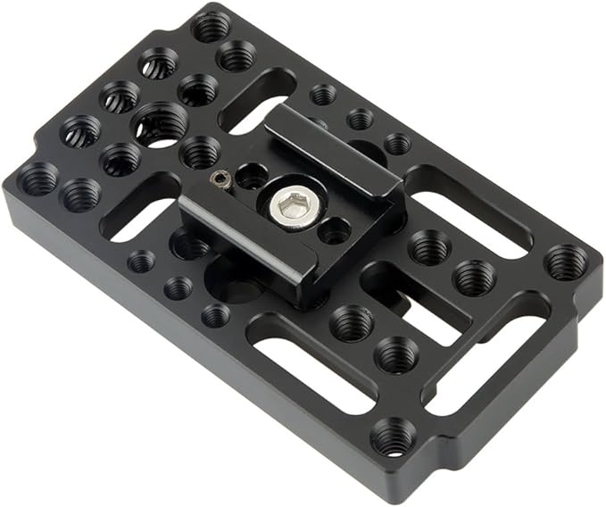 【広い範囲を使用ができる】連続プレートは1/4インチのネジ穴、3/8インチのネジ穴、M3ネジ穴 、M4ネジ穴、1/4インチのシンクホールが付いて、複数ネジ穴の設計なので、ロッド、 アーム、バッテリ、コンバータボックス等様々なカメラアクセサリーを装着可能です。(ネジ穴間隔は9mmので、もっとシンプルと直観に利用ことができます。)汎用性だけで無く安定性、機能性にも優れています。用途に合わせ調整できます。プロやアマチュアを問わず、カメラマン/映画製作者のための適当な機材です。